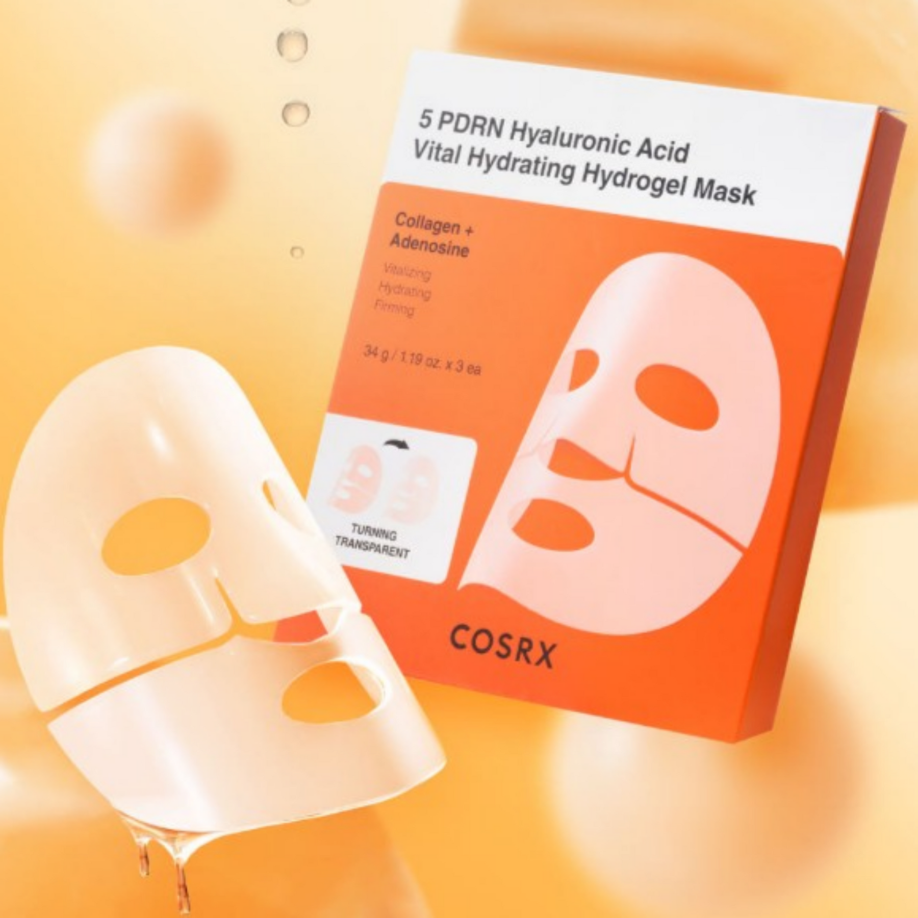 - This hydrogel mask, formulated with 5 PDRN and 8 types of Hyaluronic Acid, turns transparent as it delivers active ingredients onto the skin.